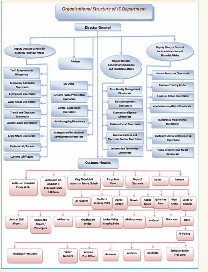 The early twenties of the last century have witnessed the establishment of Trans-Jordan Emirate. Thus, there was a need to establish a governmental agency to control the movement of goods and commodities imported into the Emirate, as well as goods transiting through its territories due to the location of the Emirate at the heart of the Arab World, as well as its strategic importance at both the regional and international levels, Therefore, the first Customs administration –